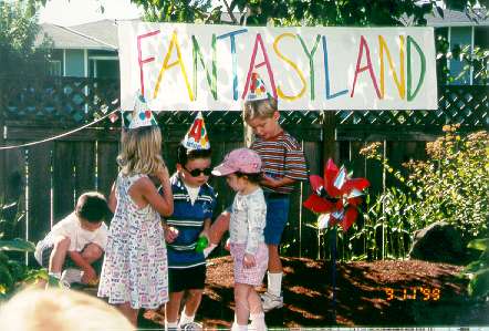 Here are me and some of my buds under the Fantasyland banner. Check out that huge pinwheel Daddy made!